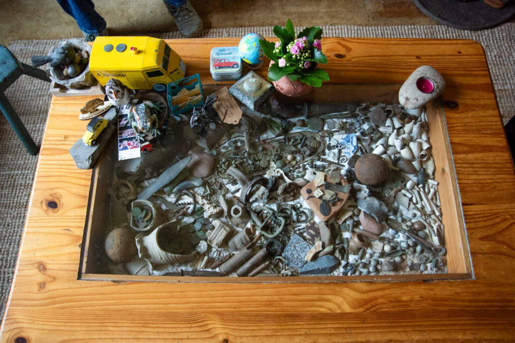 De salontafel vertelt van nog een andere passie van Evert: archeologie. Die liefde begint wanneer een neef van hem een metaaldetector koopt. Evert gaat direct mee op pad. De geschiedenis van de bodem laat hem niet meer los. Onder het glas van de salontafel liggen oude gespen, pijpjes van klei en andere voorwerpen. Evert vindt zelfs voorwerpen uit de prehistorie hier in de omgeving.